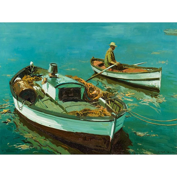 "Barcas". Óleo sobre lienzo. Firmado y fechado en el ángulo inferior derecho.