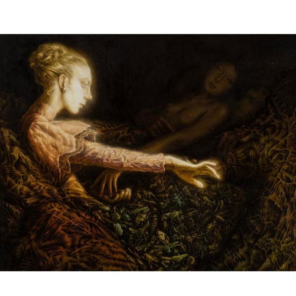 "La caricia". Óleo sobre lienzo. Firmado y fechado (81) en el ángulo inferior derecho.