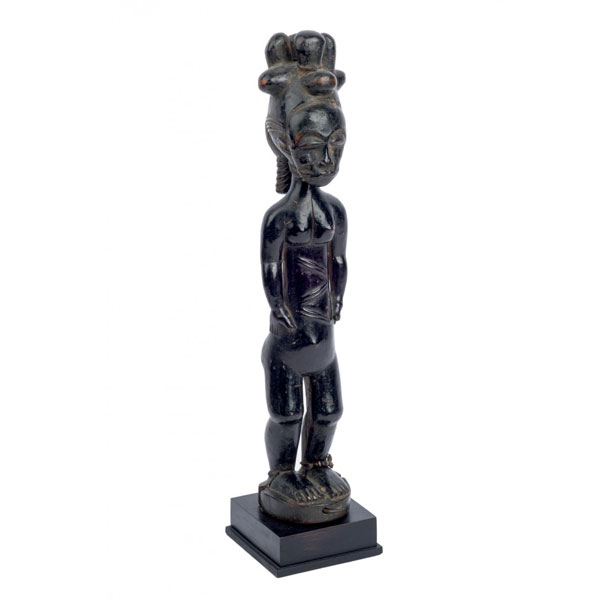 Estauilla bloblo tallada en madera y cuentas de cristal. Etnia: Baulé. País: Costa de Marfil. Finales S. XIX-Principios S. XX. Intacta.