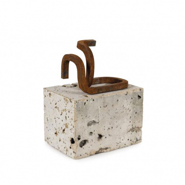 ELIZONDO, ARIEL (1968) "Cubismos & Travertinos (2021)". Escultura realizada en piedra y acero corten.