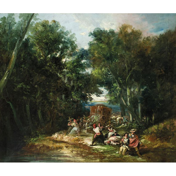 Obra de extraordinaria calidad directamente relacionada con el lienzo del legado Rafael Carvajal titulado "Salteadores de caminos" (Museo Nacional de La Habana), también sin firmar, que Francisco Calvo Serraller fecha en 1861.