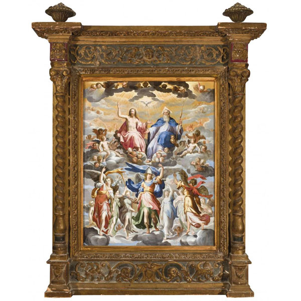 "Santísima Trinidad con Corte Celestial". Óleo sobre cobre.