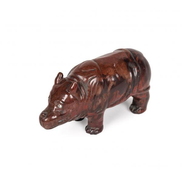Rinoceronte de la manufactura rusa Carl Fabergé realizado en jaspe rojo tallado y pulido. Ojos de diamante de sencilla talla.