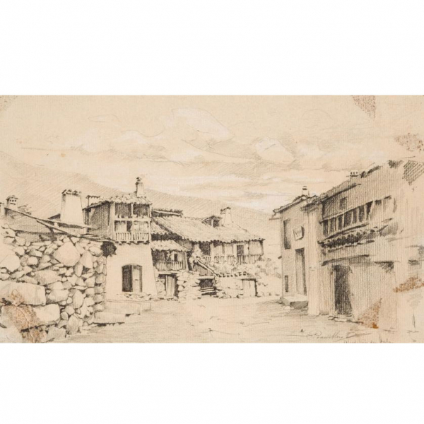 Firmado y localizado en el ángulo inferior derecho. Papel con diversos deterioros. 13,5 x 23 cm