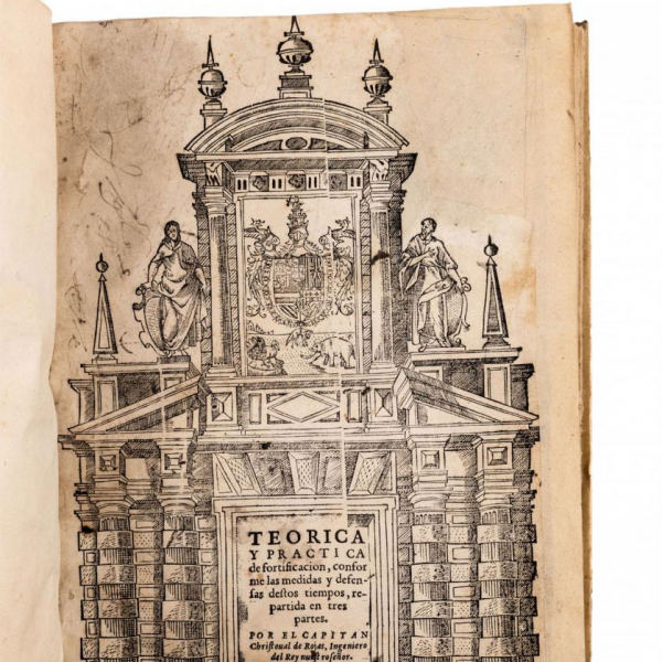 ROJAS, Cristobal de.- "TEORICA Y PRACTICA DE FORTIFICACION, conforme a las medidas y defensas destos tiempos, repartida en tres partes" M.: Luis Sánchez, 1598.