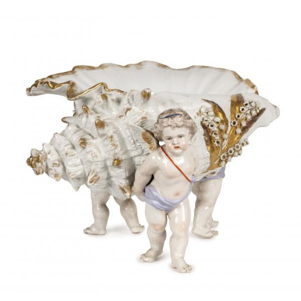Muestra a varios niños portando una caracola. Faltas muy leves. Alemania, S. XIX. 28 x 46 x 37 cm