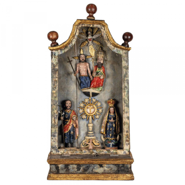 Capilla o altar portátil popularmente denominado "peto" realizado en madera tallada, policromada y dorada.