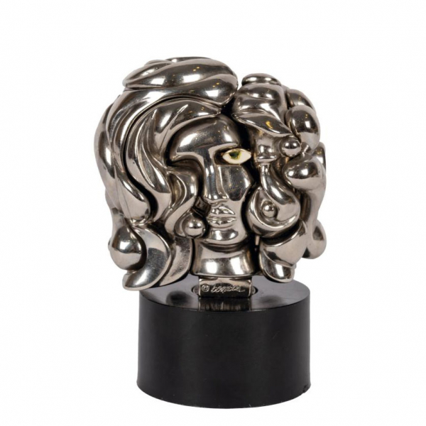 "Portrait de Michèle - Opus 110 (1969)". Escultura desmontable en Zamak niquelado, firmada y numerada (8680), base en material plástico (ABS) de color negro. Uno de los elementos, el ojo, es un anillo.