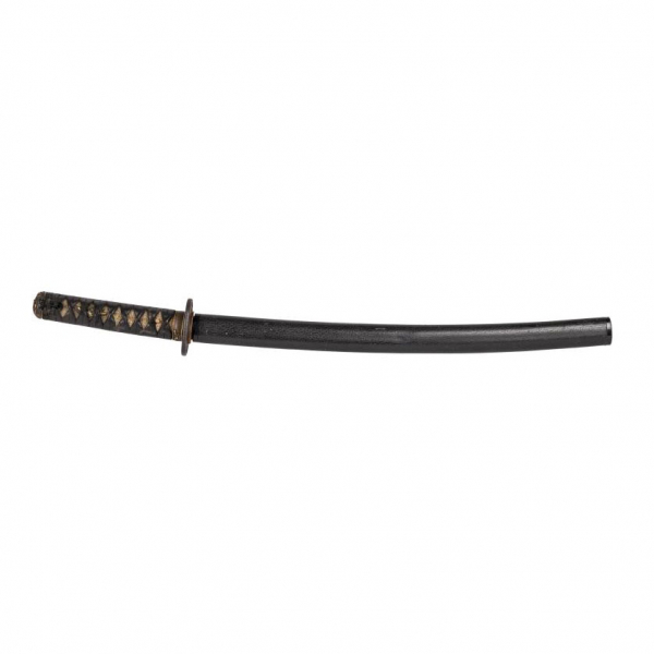 Koshirae (conjunto de guarnición, empuñadura y vaina) original. Tsuka o empuñadura cubierta de same de piel de tiburón o galuchat, con ito de seda negro. Tsuba o guardamano en hierro negro. Saya o vaina de época posterior. Japón, S. XVII-XVIII. 64 cm de largo sin vaina