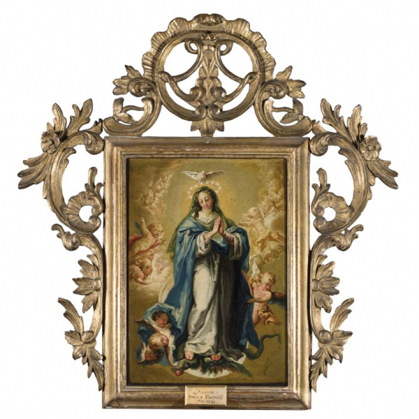 "Virgen Inmaculada (c.1814)". Óleo sobre lienzo. Con bello marco cornucopia de madera tallada y dorada.