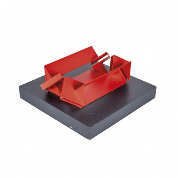 "Sin título". Escultura realizada en acero patinado sobre base de madera. Leves faltas en la pátina.
