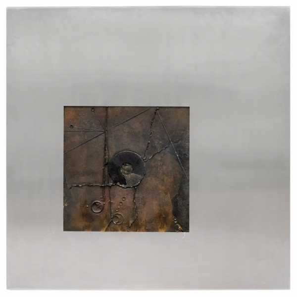 Xavier Corberó. "Sin título (c. 1970)". Escultura realizada en bronce patinado montada en tabla y acero.