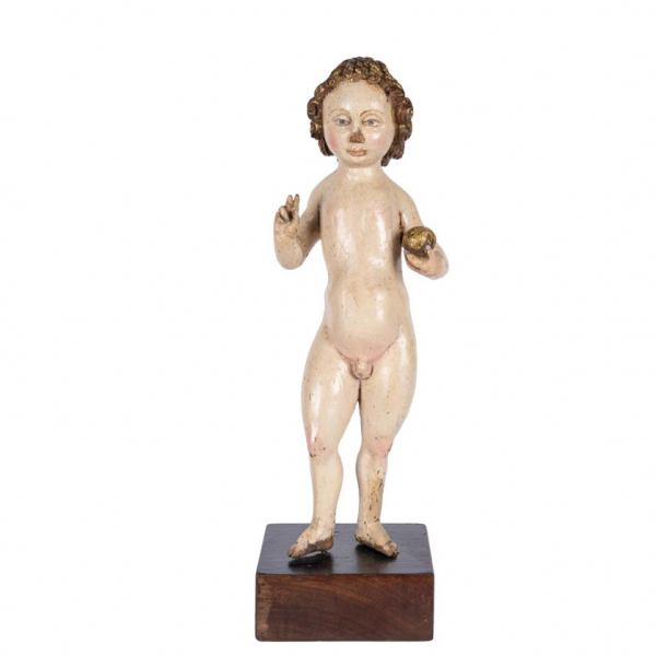 "Salvator Mundi". Talla en madera policromada y con detalles en dorado.