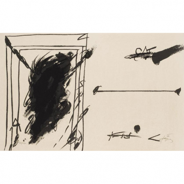 Antoni Tàpies. "La línea del horizonte (1973)". Litografía sobre papel Chiffon de la Dore. Firmada en el ángulo inferior derecho. Numerada (28/150) en el ángulo inferior izquierdo.