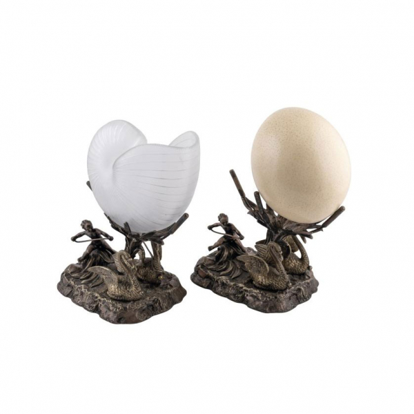*Solo una de las piezas conserva el nautilus de cristal, la otra pieza se ha sustituido por un huevo de avestruz. 24 cm de alto el mayor.