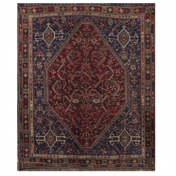 Antigua alfombra oriental realizada en lana. Decoración floral, vegetal y de motivos geométricos. Pps. S. XX.