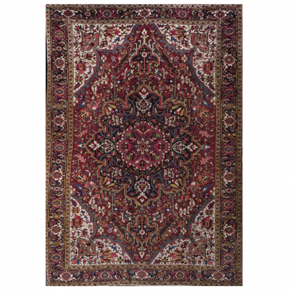 Decoración vegetal y geométrica de gulls. Fondo en colo rojo con tonos grises y negros. 245 x 345 cm.