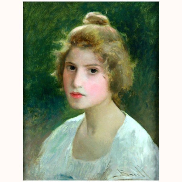 BRULL VIÑOLAS, Juan – Barcelona 1863 – 1912 -- Estudió en su ciudad natal en la Escuela de Bellas Artes de la Lonja y en el estudio de Ramón Padró, con el que colaboró en trabajos como la decoración de las salas de la Diputación Provincial de Zamora o de la iglesia de San Carlos. A los veinte años, expone su cuadro “La tonsura del Rey Wamba” en la sala Parés de Barcelona con gran éxito. El fabricante y mecenas Antonio Garriga le concede una pensión para ampliar estudios en París en el estudio de Rafael Collin, que lo llevará a estudiar la obra de pintores como Pierre Puvis de Chavannes, Gustave Moreau o Eugéne Carrière, a los que sumará la influencia de los simbolistas, espacialmente Abbot Mac Neill, para dar paso a una pintura estilizada e idílica, tal y como aparece en Las Ninfas del Ocaso, por la que sería premiado en una Exposición Nacional. Si bien en sus inicios se dedicó a plasmar el realismo, con los años se centró en el simbolismo, representando personajes de la mitología, en su mayor parte femeninos. También es conocido por la cantidad de retratos que realizó, la mayoría de niños y mendigos de la Barcelona de finales de siglo. Participó en numerosas exposiciones en las que obtuvo galardones como la tercera medalla del Salón parisino de 1900, las medallas segunda y tercera de la Exposición Universal de Barcelona de 1888 y la primera en la Exposición Universal de Barcelona de 1896, así como medalla de tercera clase en la Exposición Nacional de 1892 por Cuentos del abuelo y las de segunda en 1897 (Navidad ) y 1899 por el ya citado Las Ninfas del Ocaso. Fue también crítico de arte en la revista barcelonesa” Joventut”. Cultivó la temática histórica (en la que destaca también por el cuadro Colón en Salamanca) y la costumbrista, en la que destacan cuadros como La Navidad en Barcelona o Después del trabajo, y el retrato, género en el que destacó como pintor de niños. Otras obras suyas son Las ninfas del ocaso, Calipso o Rosalía. En todas ellas, destaca la delicadeza de dibujo e iluminación.