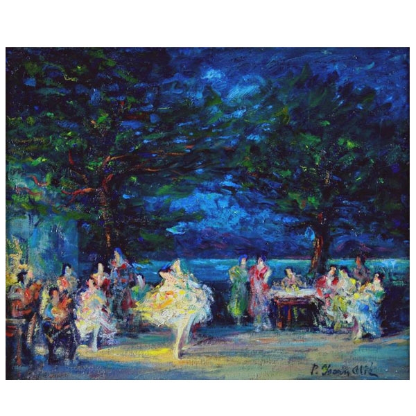 YSERN ALIE, Pere, Barcelona 1876 – 1946 - Cursó sus estudios en la Escuela de Bellas Artes de la Lonja y ampliándolos posteriormente en Roma primero y en Venecia después. Entre 1899 y 1901 se traslada a Paris con sus amigos Mariá Pidelaserra y el escultor Emili Fontbona que habían formado parte, como el, del grupo “El Rovell de l´Ou” y es allí donde descubre el impresionismo. Cultivó con especial gracejo el paisaje urbano, los interiores del Music-hall, los parques y jardines con pequeñas figuras, los bulevares y avenidas con luz artificial, todo lo que constituye el encanto de la vista en el panorama callejero de la gran ciudad. De aquella época quedan extraordinarios paisajes urbanos de París, algunos de los cuales pueden contemplarse en el Museo Nacional de Arte de Cataluña. A su regreso a Barcelona, expone en varias ocasiones en la Sala Parés, y vuelve de nuevo a París, donde reside la mayor parte de su vida, exceptuando sus periódicas estancias veraniegas en Pollensa (Mallorca) donde se encontraba con su gran amigo H. Anglada Camarasa con el que visitaba para pintar, los distintos paisajes de la costa mallorquina. Su nueva manera influida poderosamente por el impresionismo francés, le dio gran éxito y popularidad, muy especialmente en los temas de baile clásico y gitano. En el año 1900 fue admitido por el Salón de los Artistas Franceses y en 1904 expuso en los independientes. Tomó parte en la exposición de San Petersburgo de 1901 y en Barcelona expuso desde 1911 a 1922 en todos los certámenes celebrados. Obras suyas figuran en el Museo de Arte Moderno Barcelonés y en el Luxembourg de Paris además de en múltiples colecciones particulares españolas y europeas.