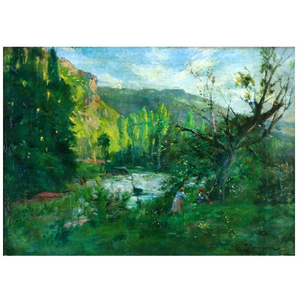 TORRESCASANA I SELLARÉS, Francesc – Barcelona 1845 – 1918 -- Después de cursar sus estudios en la Academia de Bellas Artes de Barcelona, donde fue discípulo de Martí Alsina, sigue ampliando posteriormente sus estudios en Roma y en París. Se dio a conocer en la Exposición Nacional de Bellas Artes de Madrid de 1864 obteniendo una mención honorífica por un paisaje que presentó. Participó seguidamente en las Exposiciones de Bellas Artes de Barcelona de1866 y de 1868 con un total de 26 cuadros incluyendo paisajes del Besós, Sant Miguel del Fay y Montjuich, además de varias marinas .En 1871 viaja a Madrid junto a su compañero el pintor Francisco Miralles, donde figura en el libro registro de copistas del Museo del Prado el 12 de octubre constando como garante su tarjeta de expositor. Participa ese mismo año en la Exposición de Bellas Artes de Barcelona con Dos marinas (estudios del natural) y en 1872 con una marina en la llamada Exposición Permanente. Establecido en su nuevo estudio de la calle del Pino, de Barcelona, en 1876 participa en la Exposición de Bellas Artes de Barcelona con la pintura Recorts y en la galeria Bassols. Muestra sus obras también en la sala Parés en los años 1884, 1887 y 1888 y, en la exposición de acuarelistas del Museo Martorell de 1885 con el cuadro de pescadores . En 1887 realiza una exposición individual en los salones del Círculo del Liceo con notable éxito. Presenta en la Exposición Universal de Barcelona de 1888 un cuadro de grandes dimensiones titulado “Vol d´alba” que posteriormente sería comercializado mediante fotografías por la casa Adouard y enviado a la Exposición Nacional de París. Participa seguidamente en las notables exposiciones de Bellas Artes de Barcelona de los años 1891, 1894 y 1896, pero en la edición de 1898 sufre un cierto revés al ser rechazada una de sus obras, pues su pintura de raices realistas no se acaba de adaptar a las nuevas corrientes de matices grises que propugnan Ramón Casas y Rusiñol. Paralelamente efectúa varios retratos como el retrato del militar Sanchez Lamela (1893) que sería expuesto en los salones del Círculo mercantil y el del folclorista Cels Gomis (1897) en la Sala Parés. En 1898 pinta el cuadro religioso “ La madre de los hijos del Zebedeo a los pies de Jesús” con destino a un santuario de Tierra Santa. Con posterioridad siguió exponiendo en el certamen de Olot de 1900, en la Exposición del Círculo Ecuestre, en la Exposición de Arte de 1907, Salón Rovira en 1909, Exposición de Bruselas de 1910, Exposición de Retratos de 1910, la Exposición Internacional de Arte de 1911 y en el Circulo Artístico en el año 1913. En 1905 era presidente de la junta de gobierno del Montepío de los artistas españoles y en 1910 ejerció de vicepresidente del Círculo Artístico. En sus últimos años, se dedicó al paisaje con una gran calidad lumínica construido a basa de texturas. Se conservan obras suyas en el MACBA de Barcelona, en el Museo de Arte Contemporáneo de Madrid, el de La Abadía de Montserrat y en el Louvre de París, así también podemos contemplar obras suyas en la Casa Vicens de Antonio Gaudi en Barcelona. Tuvo como discípulos al pintor y fotógrafo Pablo Audouard, a Joaquim Renart (1879-1961), Francesc Gimeno, Pau Roig y la pintora de flores Ana Risueño Rodrigo. En 1935 se celebró una exposición homenaje sobre el pintor en las barcelonesas Galerias Syra.