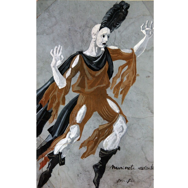 ANDREU ESTRANY, Mariano - Mataró (Barcelona) 1888 – Biarritz (Francia) 1976 - Fue pintor, dibujante, esmaltador, escultor y escenógrafo. Mariano Andreu, se inicia en el mundo del arte, atraído por la plástica del espectáculo. Pintor autodidacta pasó esporádicamente por la academia de Francesc A. Galí de Barcelona. Estudió en Londres en la Municipal School of Arts & Crafts, y allí quedó fascinado por el estilo de Aubrey Beardsley y por la pintura prerafaelina. De regreso a Barcelona se une al grupo de los Decadentistas, primera manifestación del Noucentismo. Pronto comenzó a ganarse la vida como ilustrador de las más variadas revistas, dominando varias técnicas de grabado como el boj, el aguafuerte, el buril y la litografía, mientras no dejaba de lado su labor como esmaltador, aplicando pulidos esmaltes a orfebrería y joyería. Como escenógrafo triunfó en los escenarios de París y Londres en los festivales de Stratford-on Avon que conmemoraban las obras de Shakespeare colaborando con Glinka, Fokin, Giradou . Con Néstor Martín Fernández de la Torre, el llamado último pintor simbolista, formó un pequeño grupo de artistas de esteticismo ambiguo y refinado, y del que formaban parte también Ismael Smith y Laura Albéniz, hija del compositor. Juntos protagonizaron una única exposición celebrada en 1911 en la galería del Fayans Català, donde Andreu presentó, además de dibujos y pinturas variadas, un relieve con tres figuras recubiertas de esmaltes bajo el título L’orb. Posteriormente, se instala en París, ciudad donde cosechó siempre grandes éxitos de crítica y público, aunque regresará de forma intermitente a Barcelona. Viaja más tarde a Italia para estudiar las obras del Renacimiento, un hecho que marcará definitivamente toda su obra En 1916 participó en la exposición del Saló de les Arts i els Artistes de Barcelona, con un retrato de su mujer al gouache, y en 1934 expuso una individual en la célebre Sala Parès de la Ciudad Condal. Además de en Barcelona, realizó diversas exposiciones en París, Munich, Tokio, Osaka, Londres, Bruselas, Nueva York, Los Ángeles y Buenos Aires. Está representado en los Museos del Teatro y Arte Contemporáneo de Barcelona. Además de en diversas entidades públicas y privadas internacionales.