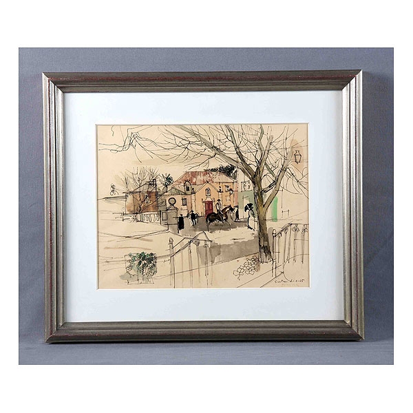 GRAU SALA, EMILIO (1911-1975). “Escena urbana, Sintra”. Tinta y gouache sobre papel, de 33x41 cm. Titulado, firmado y fechado 1-2-65.