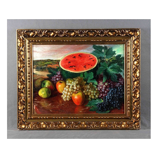 PINAZO MARTÍNEZ, IGNACIO (1849-1916). "Bodegón de frutas". Óleo sobre lienzo, de 48x63,5 cm. Firmado y fechado 1908.