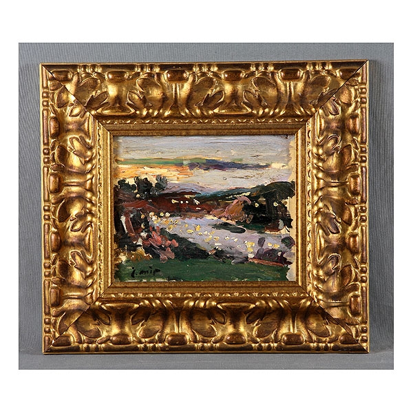 MIR, JOAQUÍN (1873-1937). “Marina”. Óleo sobre tabla, de 22x27 cm. Firmado. Se acompaña de certificado de Francesc Miralles.