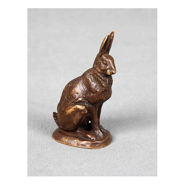 BARYE, SIGUIENDO MODELOS DE ANTOINE LOUIS (1795-1875). “Liebre”. Escultura en bronce, fundido y patinado. Firmada y con sello de la Fundición. Med.: 7,5 cm.