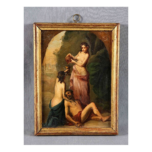 ESC. ESPAÑOLA, S.XIX. ANÓNIMO. “Lot y sus hijas”. Óleo sobre lienzo, de 23x17 cm.