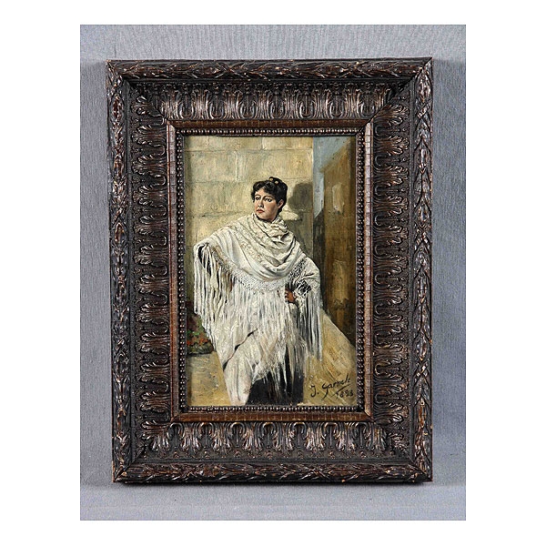 GARNELO Y ALDA, JOSE (1866-1944). “Valenciana”. Óleo sobre lienzo pegado a tabla, 21,5x14,5 cm. Firmado y fechado 1893.