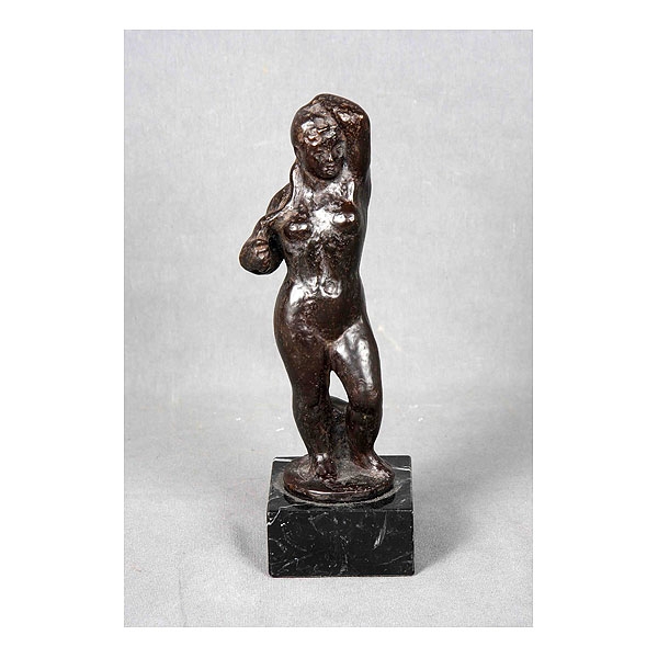 HUGUÉ, MANOLO (1872-1945). "Desnudo femenino". Escultura en bronce, sobre peana de mármol. Alt.: 25,5 cm.