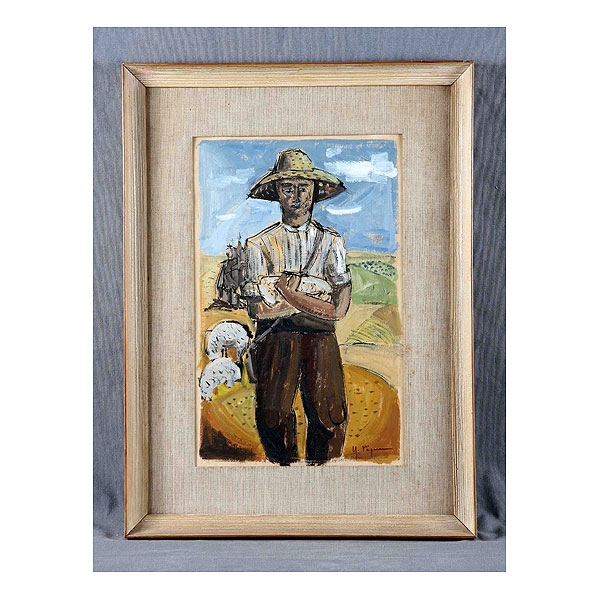 HERNÁNDEZ PIJUÁN, JOAN (1931-2005). “Campesino”. Óleo sobre lienzo, de 43x28 cm. Firmado.