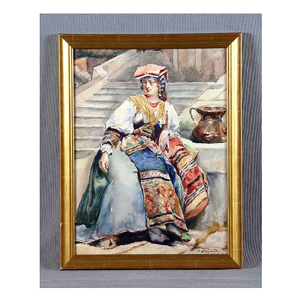 OTERMIN, AGUSTÍN (1870-1956). “Campesina”. Acuarela, de 41x31 cm. Firmada.