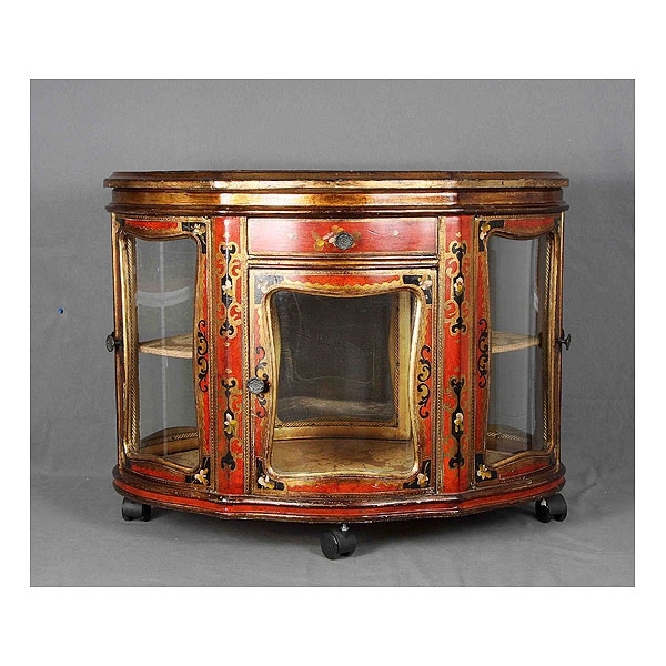 Mueble-bar italiano de estilo florentino, en madera noble, policromada y decorada con detalles florales