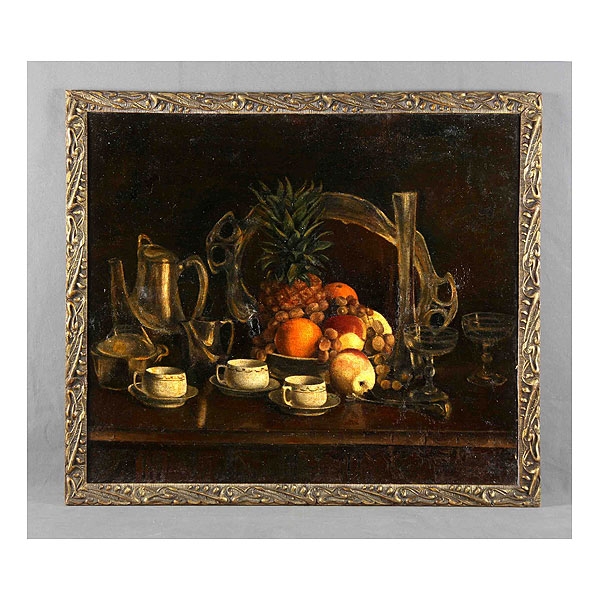 BLANCH GARCIA, JUANA (1894-1930). “Bodegón con frutas”. Óleo sobre lienzo pegado a tablex, de 67x77 cm.