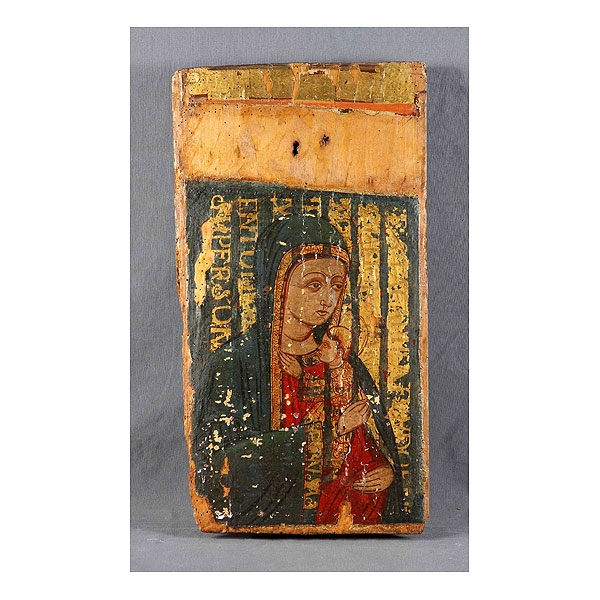 ANÓNIMO, S.XIII. “Virgen con Niño”. Óleo y oro sobre tabla, 61,5x34 cm. (Precisa restauración).