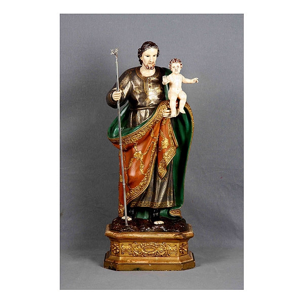 ESC. HISPANO-FILIPINA, S.XVIII-XIX. “San José y el Niño”. Talla en marfil y madera policromada, dorada y estofada, con vara de plata. Alt.: 64,5 cm.