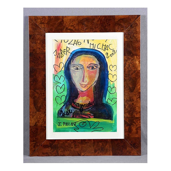 PALAU, JUAN (S.XX). “La sonrisa de Monalisa”. Técnica mixta sobre papel, de 40x28 cm. Firmada y fechada 2002.