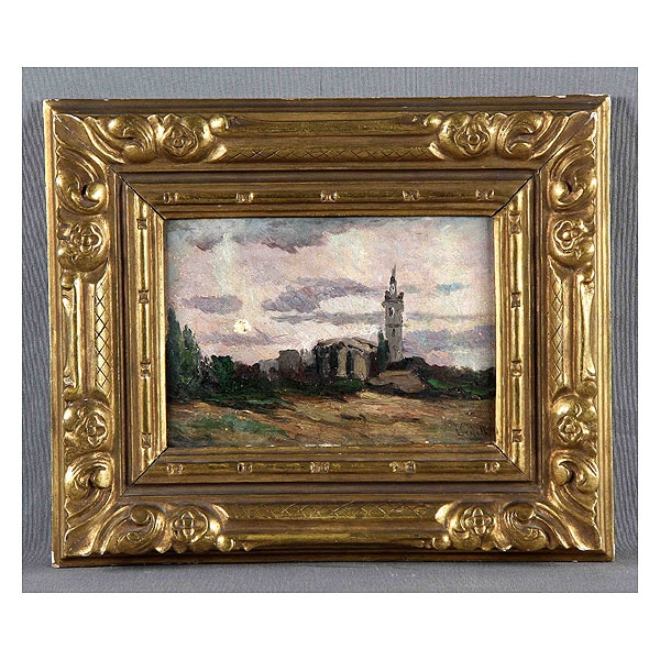 URGELL, MODESTO (1939-1919). “Visión rural”. Óleo sobre tabla, de 15,5x23 cm. Firmado.