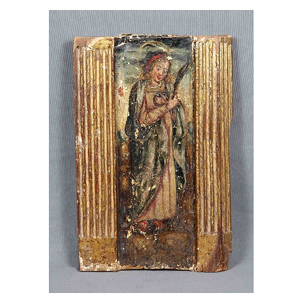 ANÓNIMO. "Santa Mártir". Óleo sobre lienzo pegado a tabla, de 38,5x25 cm.