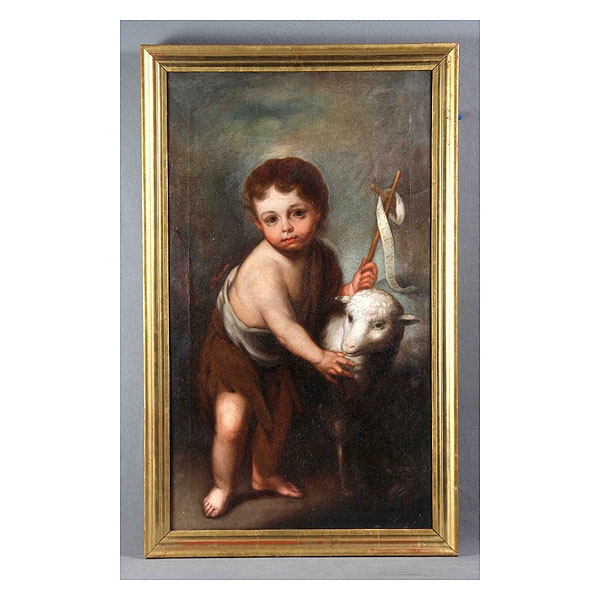 Según Estudio realizado por D. Eduardo Bru Celma, Catedrático de Hª. del Arte, Septiembre 2009: "… Esta obra forma pareja con el anterior lote, e igualmente es copia del lienzo de San Juanito que Murillo pintó para el retablo frontero del Hospital de la Caridad de Sevilla hacia 1671.