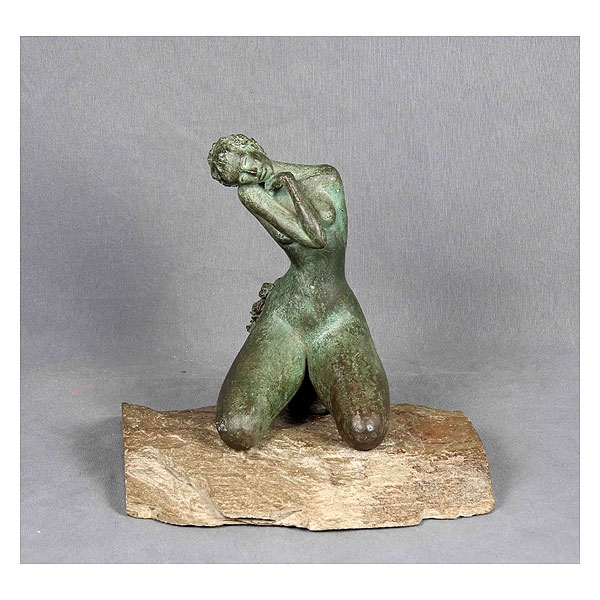 BARTOLOMÉ, CARMEN. "Desnudo femenino". Escultura en bronce fundido y patinado, sobre peana de piedra. Firmada y justificada P/A. Alt.: 28 cm.