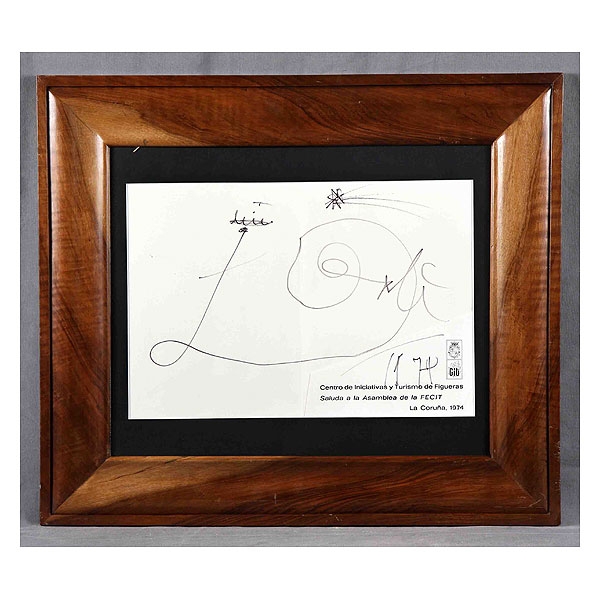 544 Publicado en GALILEO. Subasta 20 Septiembre 2018 tamaño de la fuente disminuir el tamaño de la fuente aumentar tamaño de la fuente Imprimir Compartir DALÍ, SALVADOR (1904-1989). Autógrafo sobre un cartel del Centro de Iniciativas y Turismo de Figueres. Saluda a la Asamblea de la FECIT. La Coruña, 1974. Med.: 30x45 cm. Información adicional Precio de salida: 800€ >>: PUJAR AQUÍ Tweet Etiquetado como DIBUJO Valora este artículo 1 2 3 4 5 (0 votos)