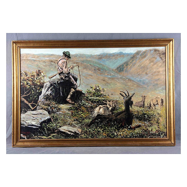 MIGUEL NIETO, ANSELMO (1881-1964). “Pastor con cabras”. Óleo sobre lienzo, de 71x110 cm.