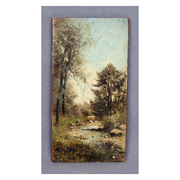 RAMOS ARTAL, MANUEL (1855-1916). “Paisaje fluvial”. Óleo sobre tabla