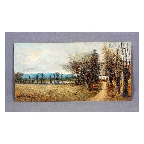 RAMOS ARTAL, MANUEL (1855-1916). “Arboleda junto al camino”. Óleo sobre tabla