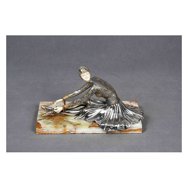 Figura criselefantina sobre peana de ónix. Med.: 15x25x15 cm.