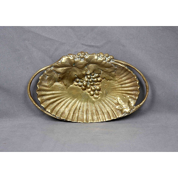 Tarjetero en bronce dorado representando cesto decorado con hojas de parra y racimo de uvas. Firmado A. MARIONNET.