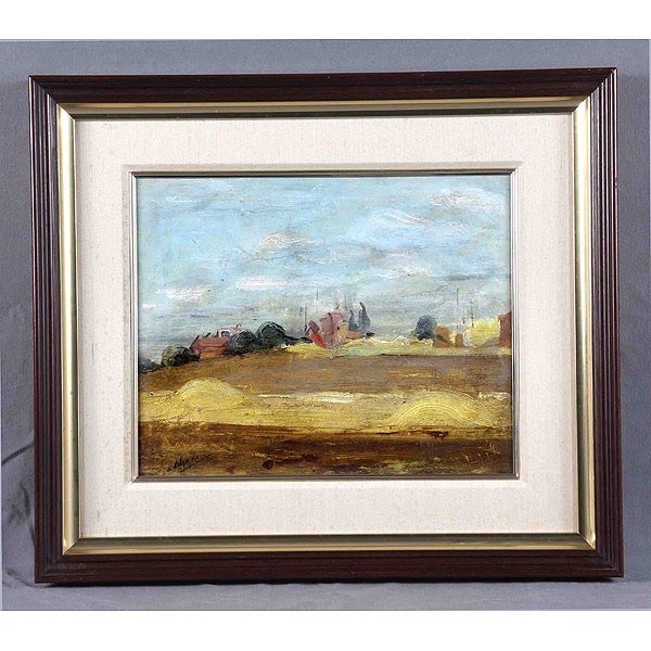 DELGADO, ÁLVARO (1922-2016). "Visión rural". Óleo sobre tabla